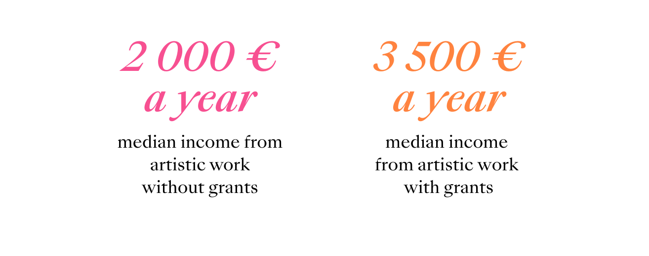 Grants play a central role for visual artists, serving as a prerequisite for their artistic work and livelihoods as well as the creation of diverse works of art. Grants are one of the most significant sources of income for survey respondents.
